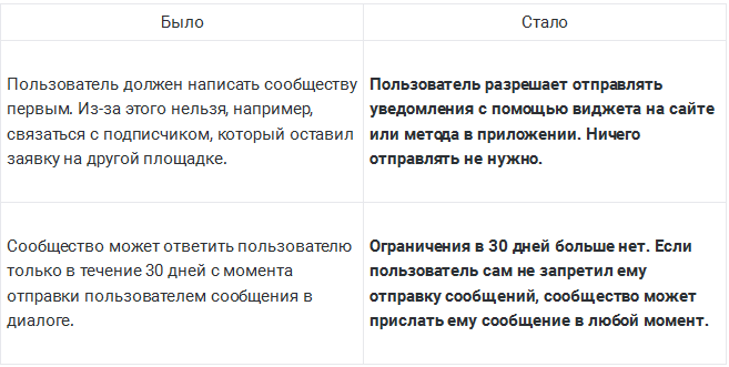 Для внешних сайтов разработчики предлагают использовать виджет для подписки на сообщения сообщества. Все, что нужно будет сделать пользователям – это нажать на кнопку «Получать уведомления» на сайте, подтверждая тем самым своё согласие с подпиской на сообщения во всплывающем окне. После этого можно будет без ограничений по времени отправлять ему личные сообщения от имени сообщества.