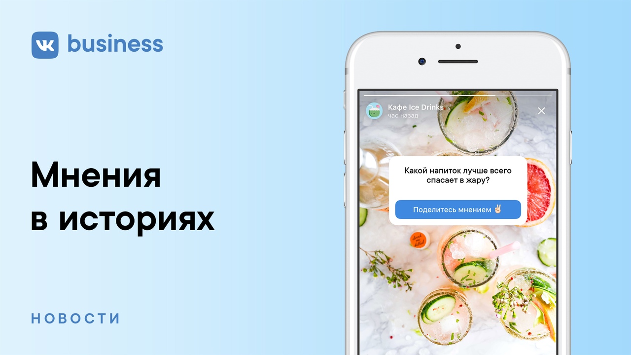 В «историях» ВКонтакте появится новый стикер «Мнения» для сбора обратной связи от клиентов.