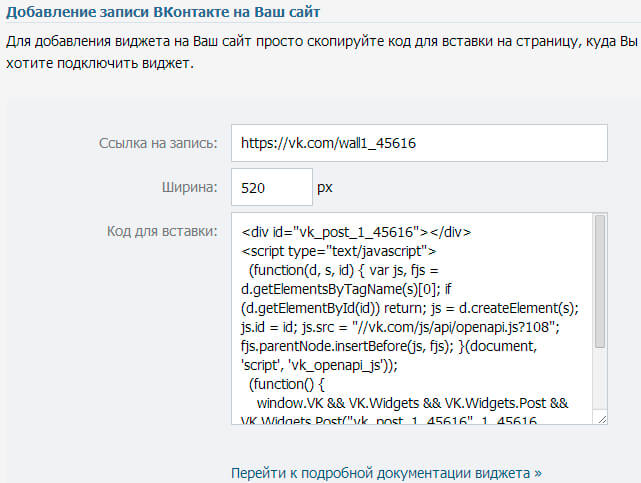 ВКонтактe запустил виджет, позволяющий встраивать посты пользователей из соцсети на сторонние сайты. Как в блоге компании, чтобы добавить на сторонний ресурс пост или комментарий из ВКонтакте, достаточно скопировать код для вставки на страницу. Найти код для вставки можно рядом с самим постом, нажав на кнопку «поделиться» и в открывшемся окне выбрав ссылку «экспорт записи».
