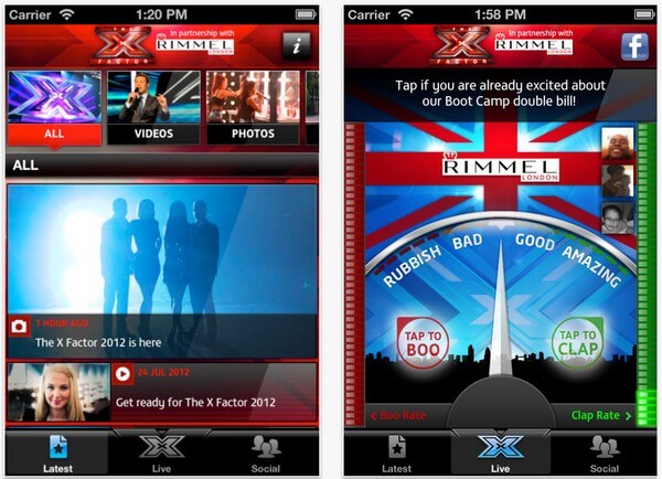 Сейчас программа X-Factor непосредственно не применяет технологию «вторых экранов», но 6 рекламодателей использовали эту возможность во время финала X-Factor в 2012 году. Согласно статистике, в тот вечер рекламодатели, использовавшие «вторые экраны», увеличили вовлечение клиентов на 38%, и на 8,75% возрос CTR.